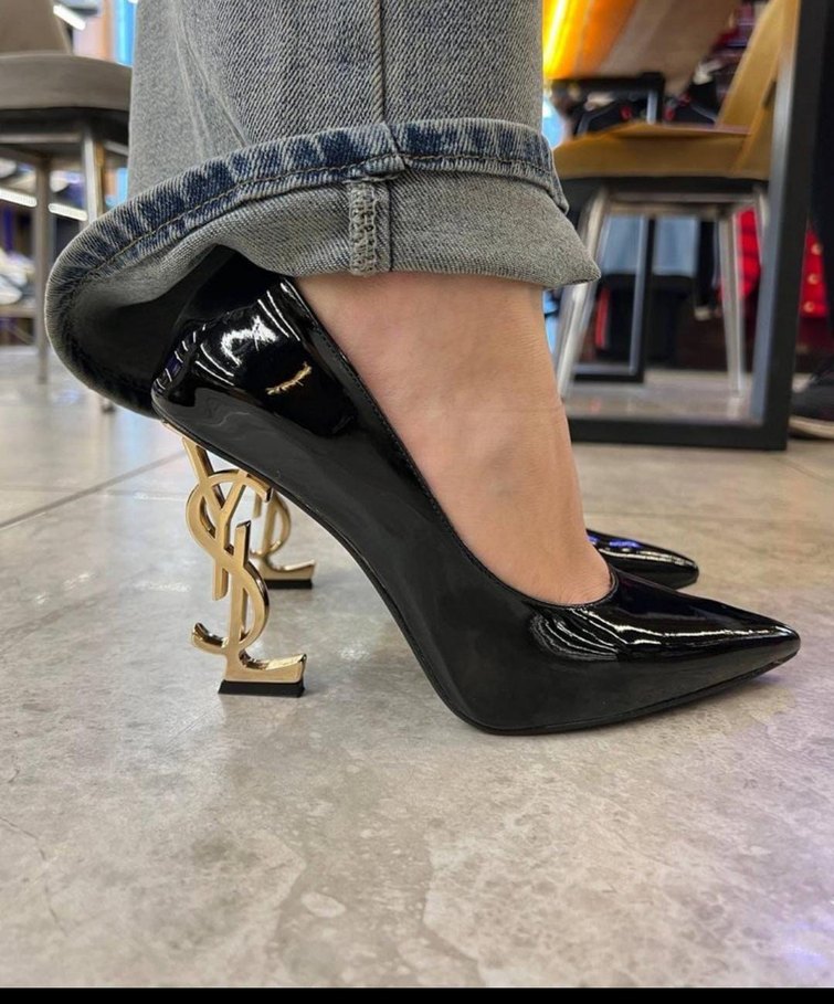 Tam kalıp , Rugan kumaş , Özel ithal kararmaz baskılı ysl topuk , topuk punto 9cm
