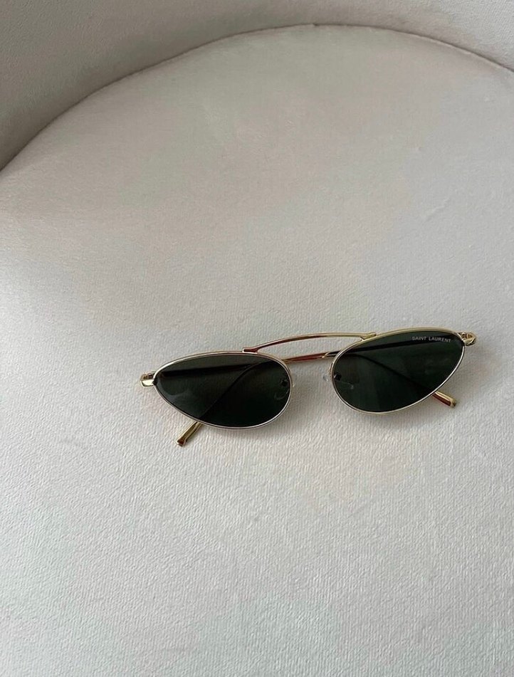 (Kutulu gönderim) Parlak altın rengi, minimalist kedi gözü çerçeveli kadın güneş gözlüğü, klasik zarafet ve zahmetsiz şıklığı ile.