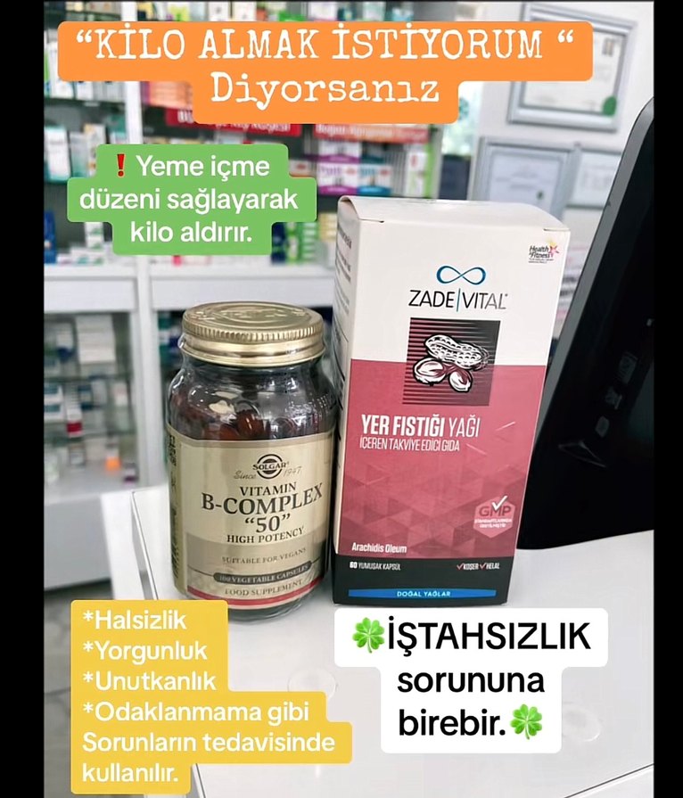 Zade Vital yer fıstığı yağı iştahı düzenleyerek kilo aldırır. Vitamin B-Complex halsizlik, unutkanlık ve odaklanma sorunlarında kullanılır.