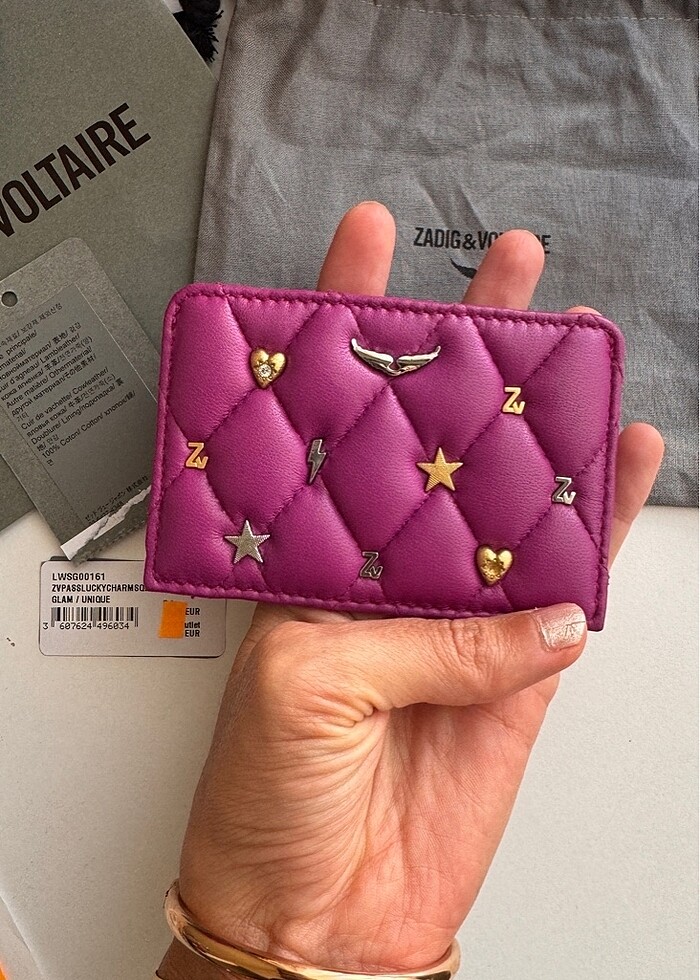 Zadig&Voltaire Glam Serisi Fuşya Deri Kartlık Orijinal mağazadan alındı,hiç kullanılmadı.Zarif kanat detayları ve şans figürleriyle dikkat çeken Türkiye ve dünya genelinde artık satışa sunulmayan bu kartlık, orijinal bez çantası ve poşeti ile birlikte gönderilecektir. Faturası mevcut, tutar olmadan görsel olarak gösterilecektir.