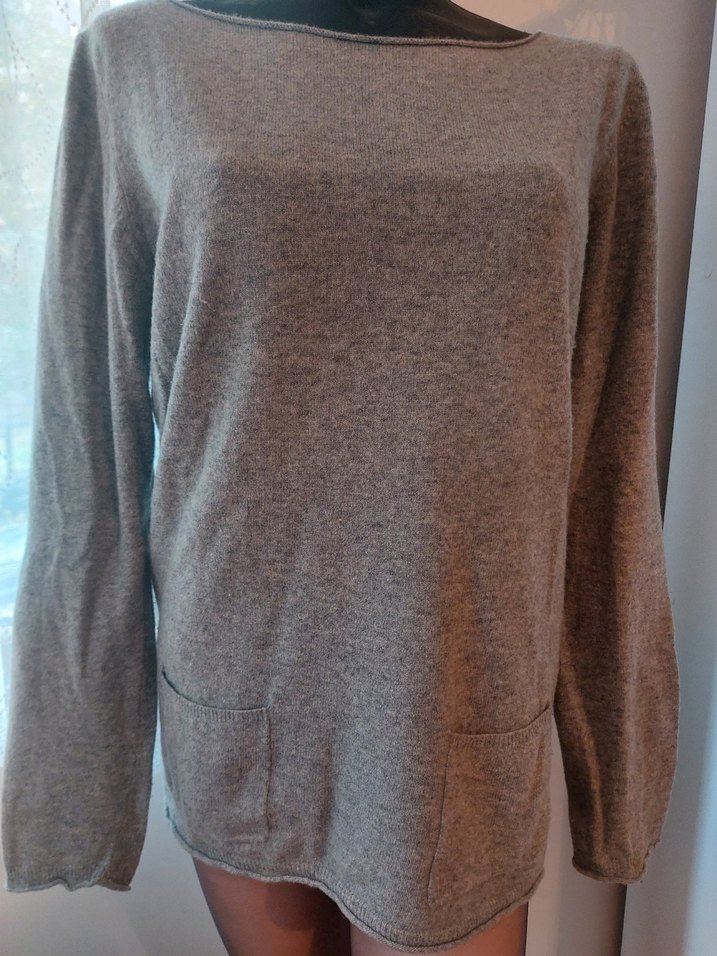 Gri renkte,az kullanılmış, kayık yaka, , dökümlü, kaşmir kazak.