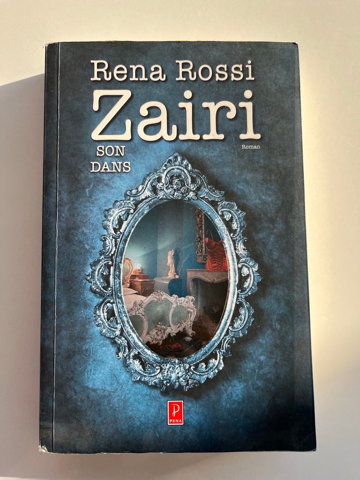 Rena Rossi'nin "Zairi" adlı romanı, süslü bir aynada şık bir odanın yansımasıyla gizemli bir kapak sunuyor. Aile ve miras temalarını işliyor.
