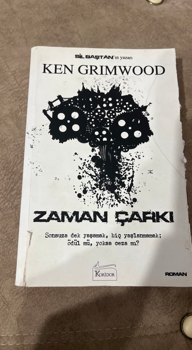 Ken Grimwood'un Zaman Çarkı romanı, sonsuza dek yaşamak ve hiç yaşlanmamak temasını işler; ödül mü yoksa ceza mı olduğunu sorgular. Ön kapakta sıkıntı bar sadece
