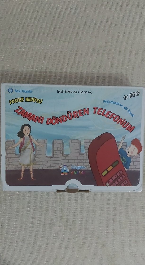 İnci Bakan Kıraç'ın yazdığı "Zamanı Döndüren Telefonum" çocuk kitabı, poster hediyesi ve 10 kitap içerir. Sesli özelliklerle interaktif bir okuma sunar.