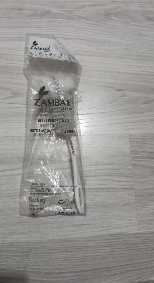 Türkiye'de üretilen Zambak marka gri ve beyaz renkli bebek biberon temizleme fırçası. Biberonları etkili temizler.