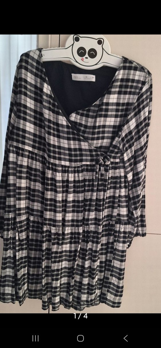 Zara ekose desenli, Salaş kesimi ve tekne yaka detayıyla günlük kullanıma uygun, Paris tarzı.