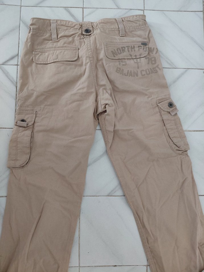 Bol kesim, pamuklu bej pantolon, baskılı detaylar ve kemer ile. Çoklu cepler ve street tarzına uygun günlük kullanım için. Zara 11 12 yas