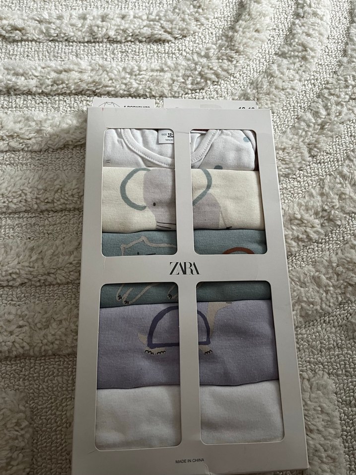 Zara markasına ait uzun kollu çıtçıtlı body.18-24 aylıktır kız ya da erkek çocuk için kullanılabilir.içinde 5 adet body vardır