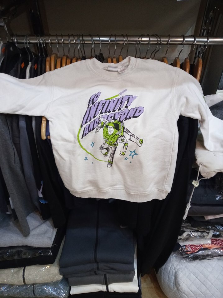 Pamuklu kumaştan yapılmış, uzun kollu, bisiklet yaka ve renkli baskılı fermuarlı beyaz renkli erkek çocuk sweatshirtü. 7 yaş pamuklu sağ kolda hafif leke var