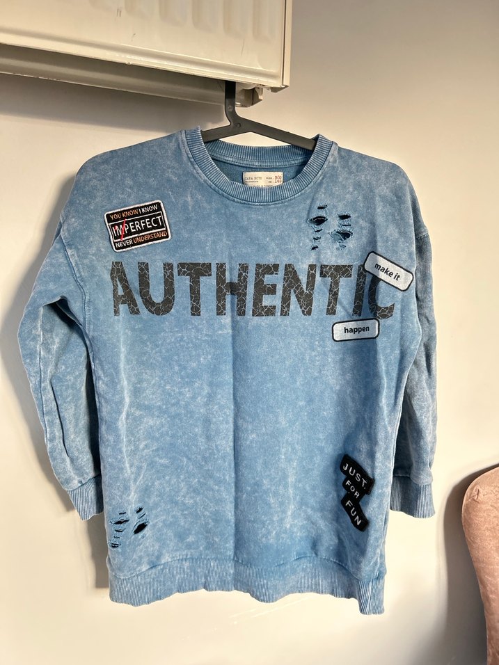 Zara 9/10 yaş Erkek çocuk için uzun kollu, bol kesim denim sweatshirt. Mavi-gri yıkamalı, düğmeli ve baskılı detaylara sahiptir. Önünde "AUTHENTIS" yazısı bulunur. eskitme detaylıdır,hiç kullanılmadı.Çok tarz bir sweatshirt. Son fiyattır ❤️ #zara #zarakids #zaraboy #erkekçocuksweatshirt #erkekzara #eskitme #denim