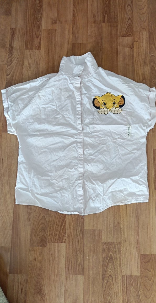 Zara marka, açık pembe renk, pamuklu gömlek, kısa kollu, yakalı ve düğmeli ön yapıya sahiptir. Salaş kesimi ve göğüste baskılı deseni ile günlük sokak stiline uygundur. Göğüste baskı olan bölgede hafif renk farkı var. Çok az giyildi.