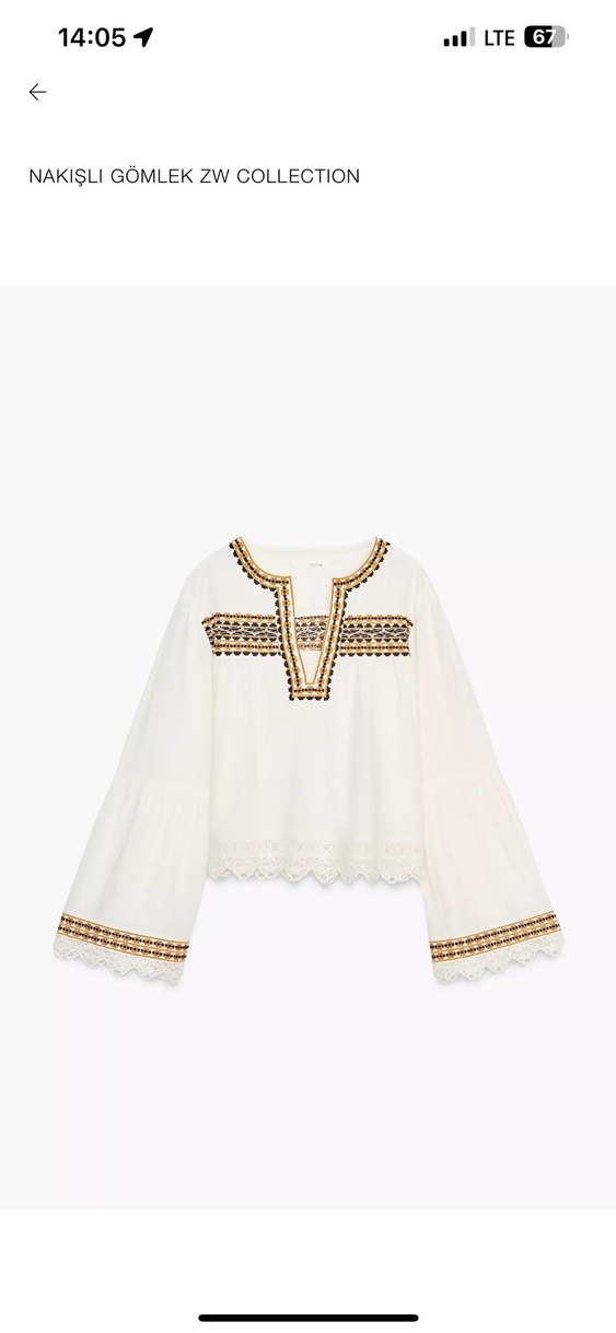 Pamuklu kumaştan, nakışlı ve boncuk detaylı beyaz bluz. Uzun, bol kolları ve tekne yaka tasarımı ile günlük kullanım için uygundur. Ürün yalnızca 1 kez giyilmiştir. Ürünlerin stoğu bulunmamaktadır