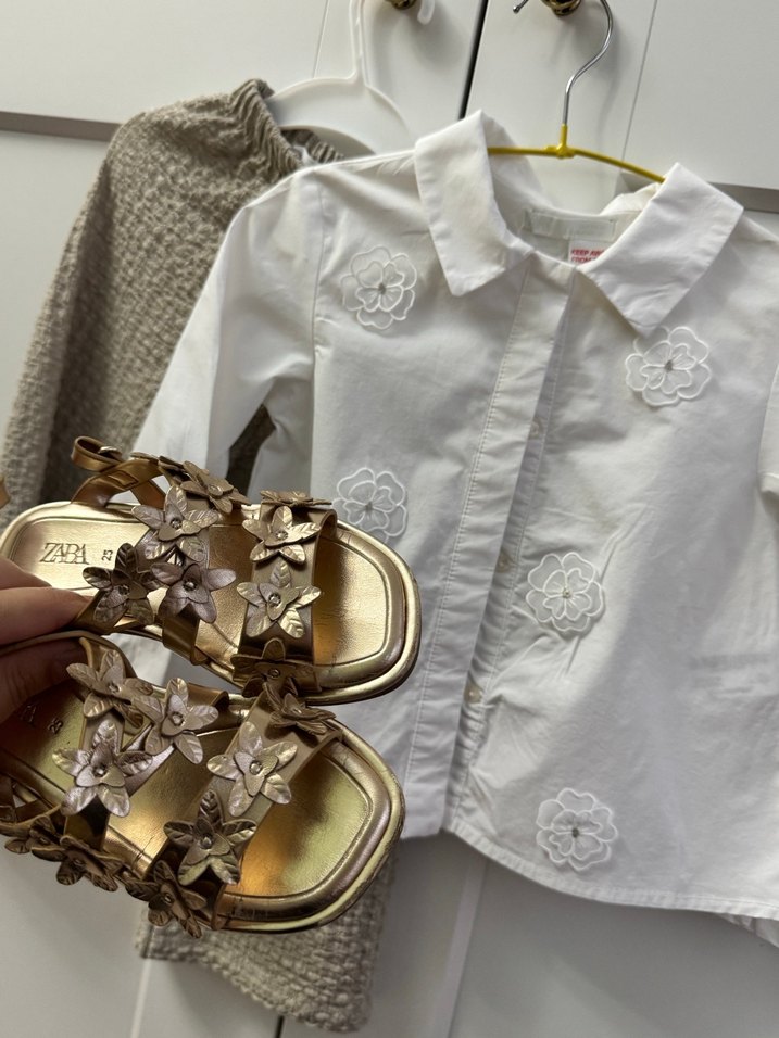 Gömlek sadece iki kere giyilmiştir iki yaş doğum gününde giymişti yakın fotoğrafta gördüğünüz çok soluk gri leke ve yanında yine aşırı soluk hafif pembemsi bile leke vardır,güçlü bir leke çıkarıcı belki çıkarır ben çıkaramadım giydiğinde hiç belli olmuyor zaten, çok kaliteli kendim de 1000 TL civarına almıştım Zara‘dan, 1.5-2.2.5 yaş grubu düşünebilir, ölçüler de fotoğrafta mevcut. Altını da zara dan yine 1200 civarına almıştım, hafif simli bir yapısı var çoğu kombinle uydurursunuz, Düşünülürse kombin yaptığım altıyla beraber veya ayrı ayrı verebilirim, ikisi de zaradır alt lastikli olduğu için 3-3.5 yaşına kadar çok rahat giydirilir, Rugan ayakkabısının önlerinde soyulmalar vardır fakat goldlu yansımalı olduğu için giyildiğinde farkedilmemektedir. üçünün de kalitesi çok iyidir ayakkabı 25 numara