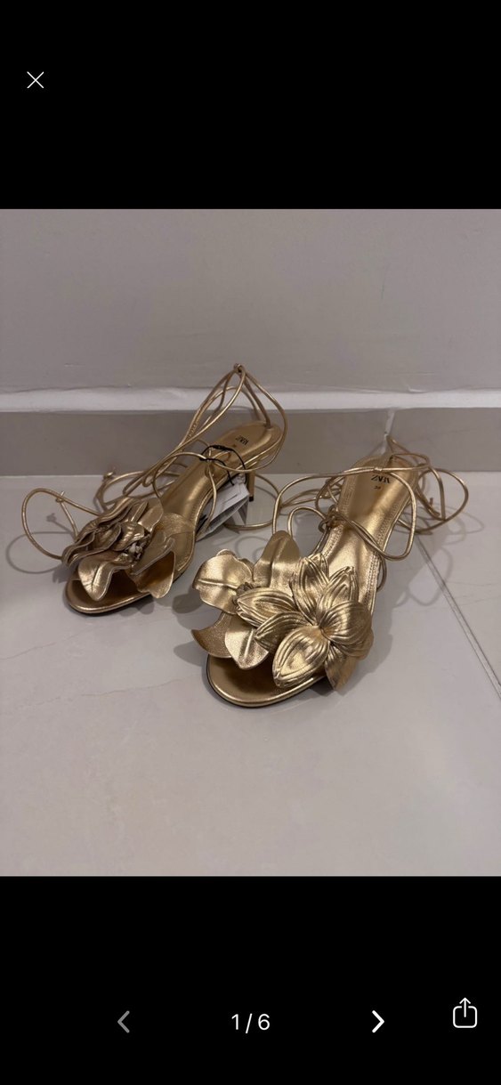 Zara Altın Renkli Çiçek Desenli Dolgu Topuklu Kadın Ayakkabı