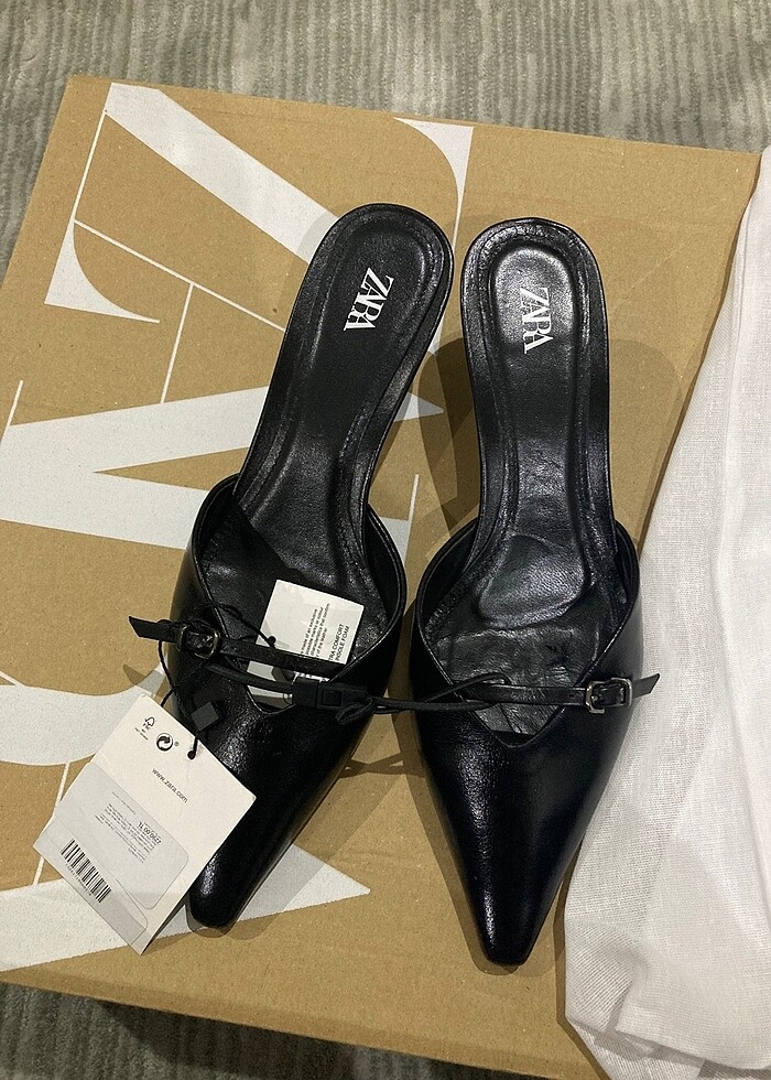 Zara tokalı deri arkası açık topuklu ayakkabı 37 beden kitten heel 4 cm topuk boyu