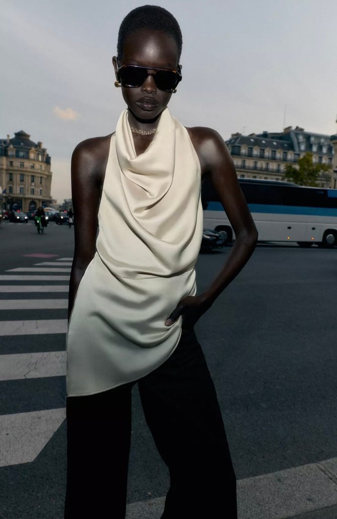 Zara asimetrik saten halter top