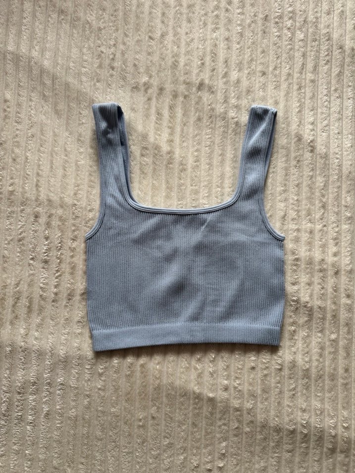 Bebek mavisi renginde XS beden, elastik askılı crop