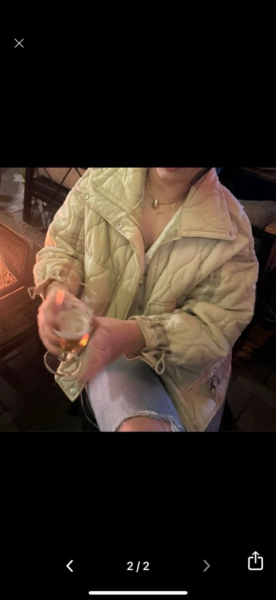 Açık yeşil renkte, düğmeli, uzun kollu ve bol kesim midi ceket. Halter yaka ve rahat sokak stiliyle günlük kullanıma uygun.