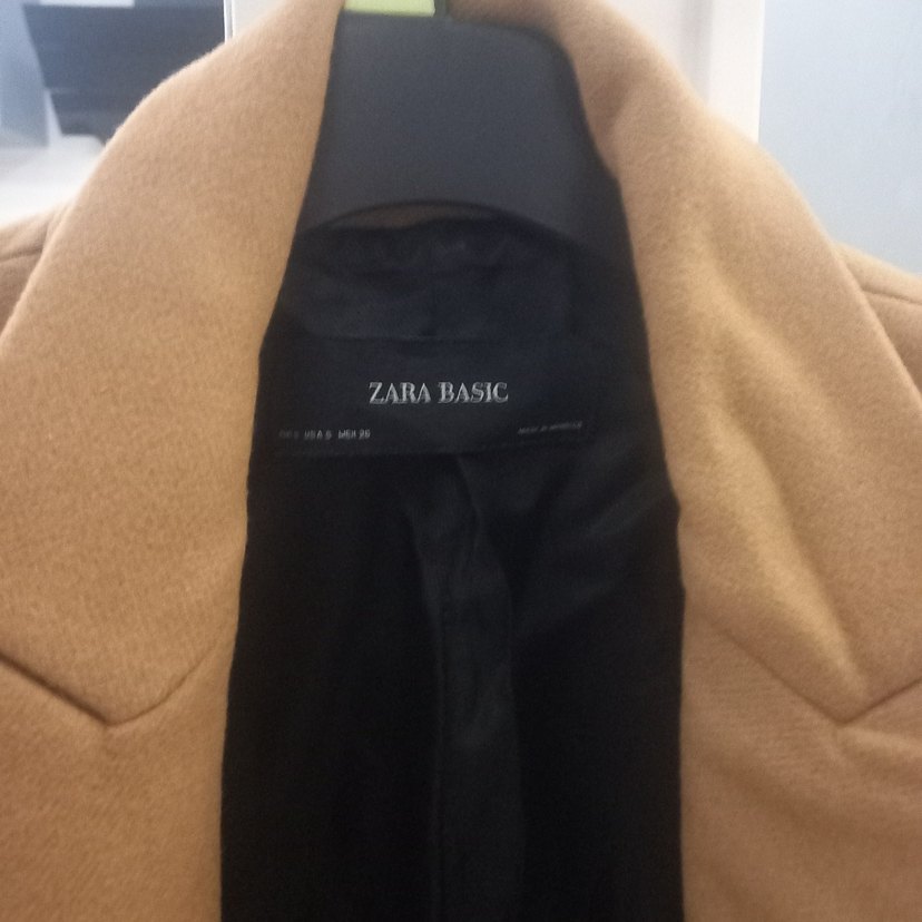 taba rengi , midi uzunlukta, yakası kesik ve fermuarlı Zara Basic kadın kaban. Günlük iş ve sokak giyim için uygundur.