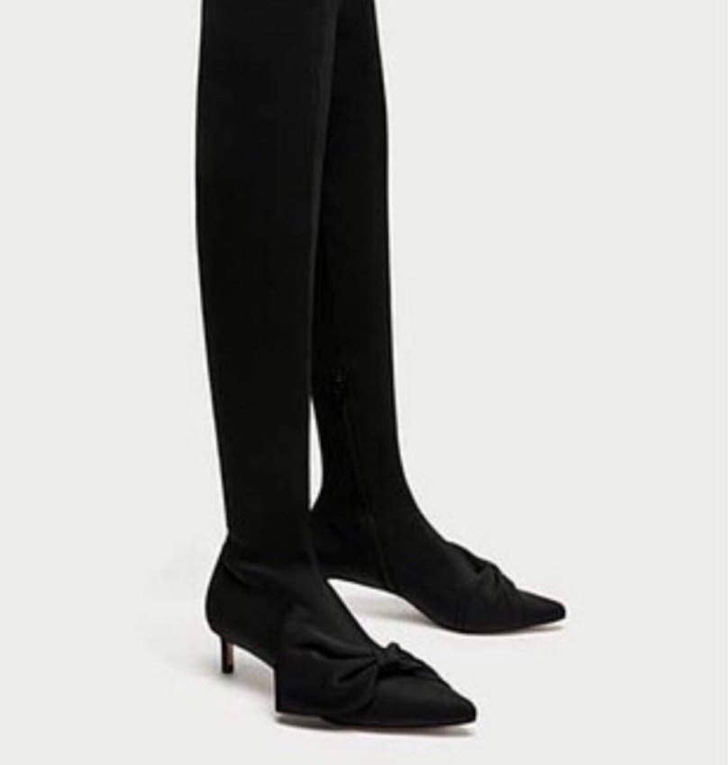 Zara Basıc Kadın Fiyonklu Çorap Çizme