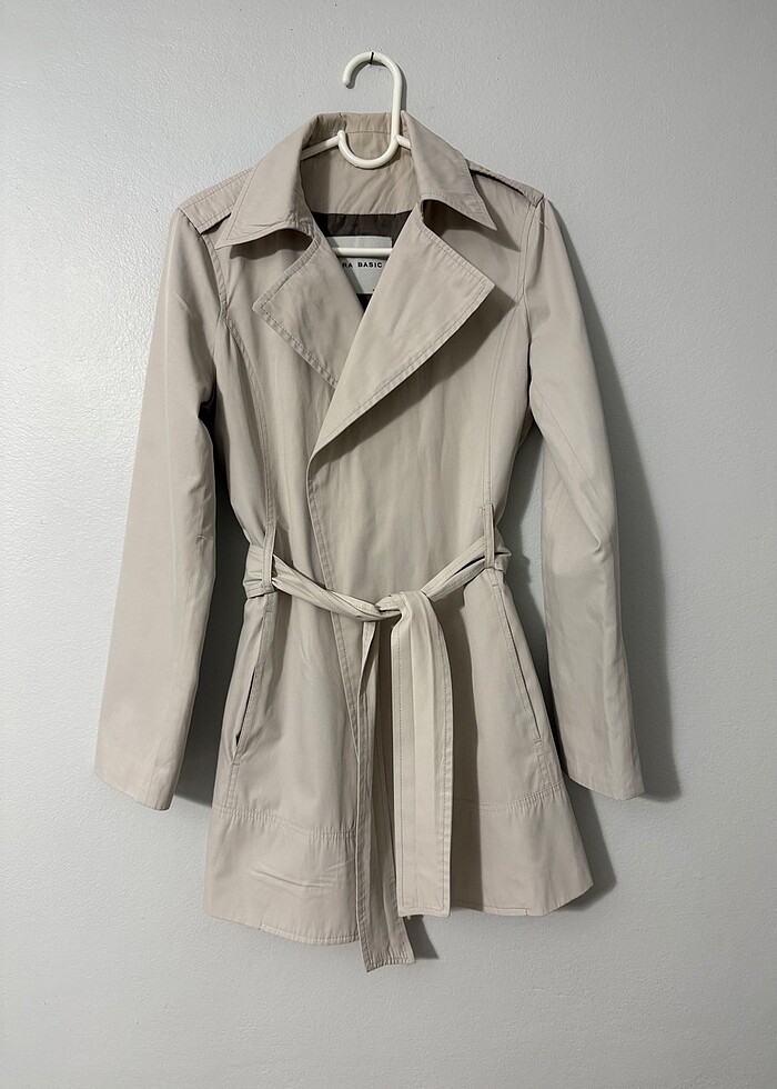 Zara Basic marka, S beden klasik trençkot. Rengi tam fotoğraflardaki gibidir, her kıyafetle uyum sağlar. Ürün çok az kullanıldı. Kumaşı kaliteli ve astarlıdır.
