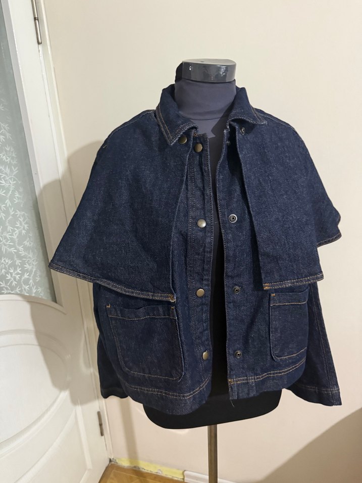 L beden #zara #bayan #denim #ceket #mont Lacivert renkte, düğmeli, kısa kollu, normal midi uzunlukta, salaş kesim denim ceket. Notched lapel yakaya sahip, günlük sokak stili için uygun. Üst kısım düğmeli