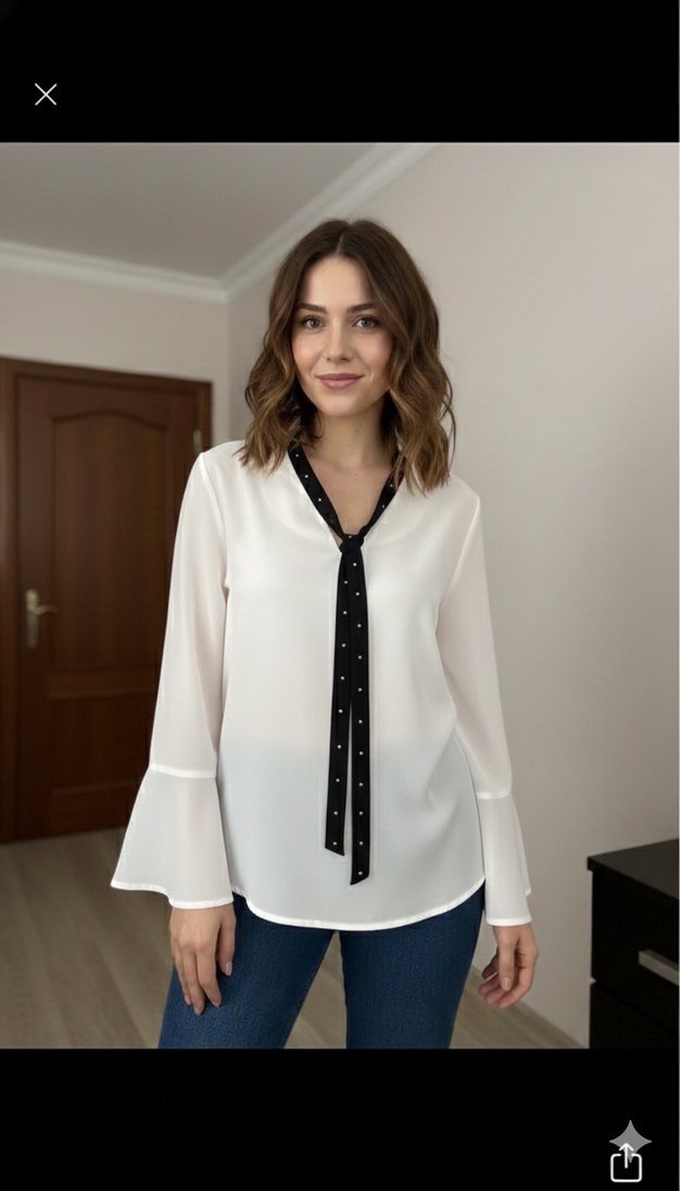 Hiç kullanılmadı tertemiz ve yenidir yakası ve kolları detaylı çok şık bir gömlektir yakasındaki şerit kadifedir iki kol arası 48 cm boyu 63 cm dir 36 38 40 bedene uygundur