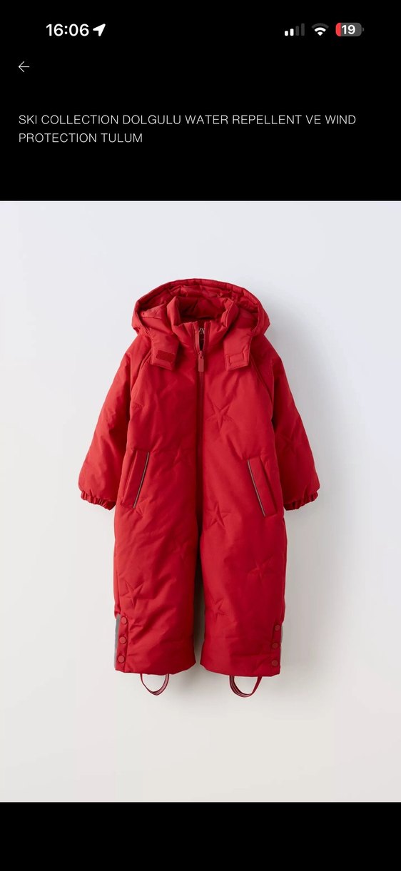 Zara Bebek Kırmızı Fermuarlı Kayak Tulumu