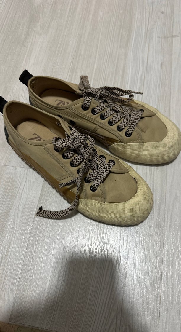 Zara Bej Bağcıklı Kadın Günlük Spor Ayakkabı