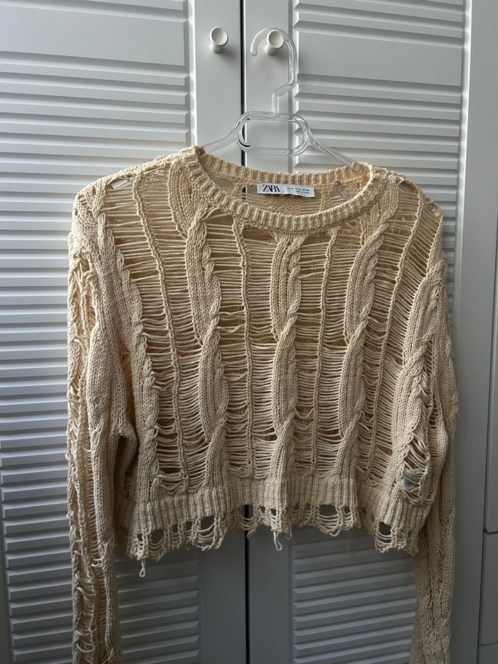 Zara Bej Bohem Örgü Kadın Kazak - Görsel 1