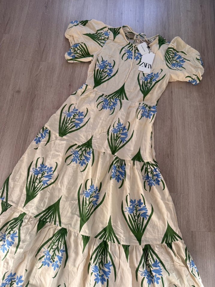 ZARA Bej Çiçek Desenli Uzun Bohem Elbise