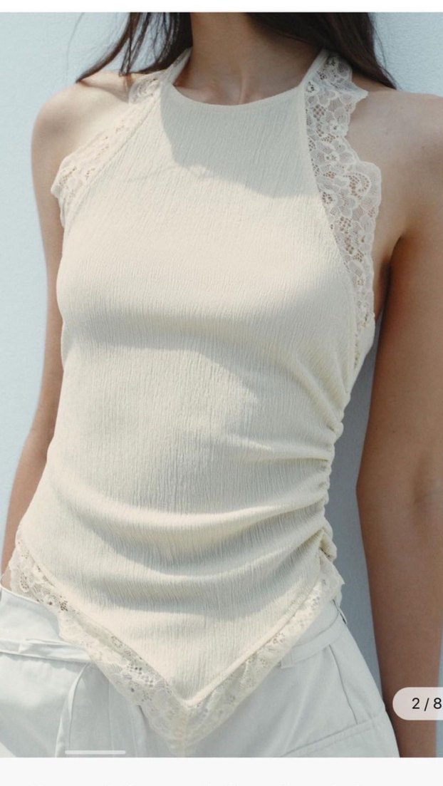 Zara Bej Dantelli Halter Yaka Bluz Büstiyer Top