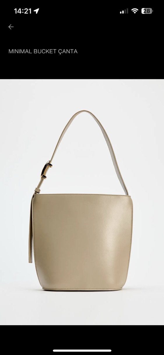 Zara Bej Deri Minimalist bucket Kadın Çanta
