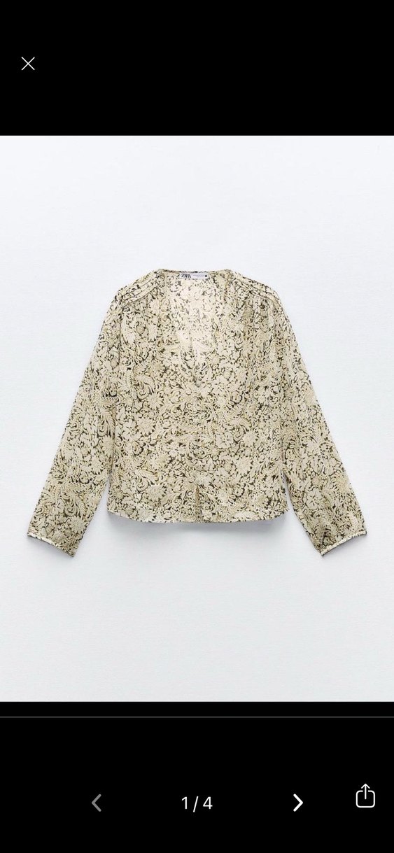 ZARA Bej Desenli V Yaka Dantel Detaylı Bluz