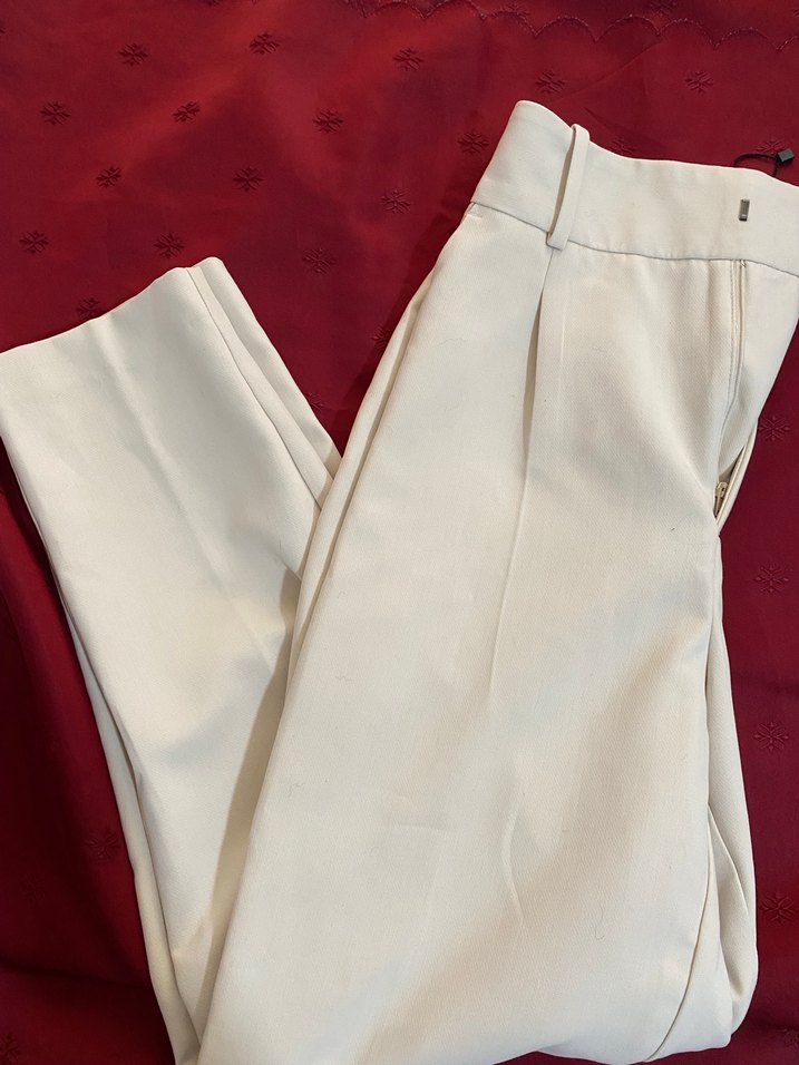 Kusuru yoktur hiç kullanılmadı krem Bej, regular fit, pliseli kadın kumaş pantolon.