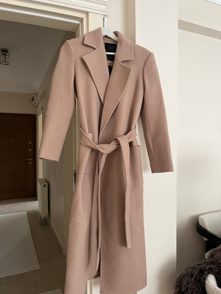 Zara Bej Kadın Süet Kuşaklı Uzun Kaban