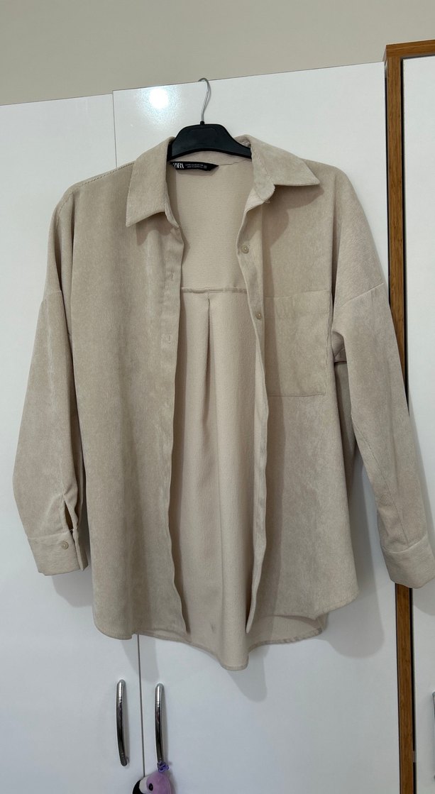 Zara Bej Keten Kadın Gömlek Uzun Kollu