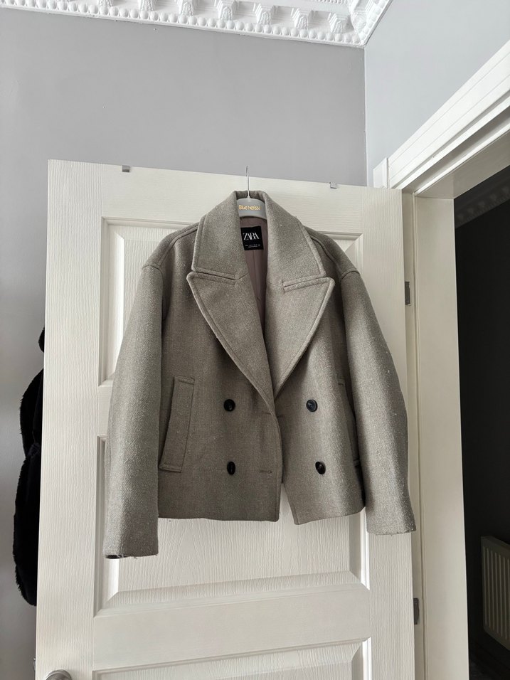 Zara marka, bej renkte yün kumaştan, düğmeli, normal kesim ve midi boyda kadın kaban. Minimalist ve normcore tarzıyla günlük kullanıma uygun. Hafif tüylenmesi var olabildiğince temizleyip göndereceğim makine ile bundan dolayı fiyatı düşük verdim