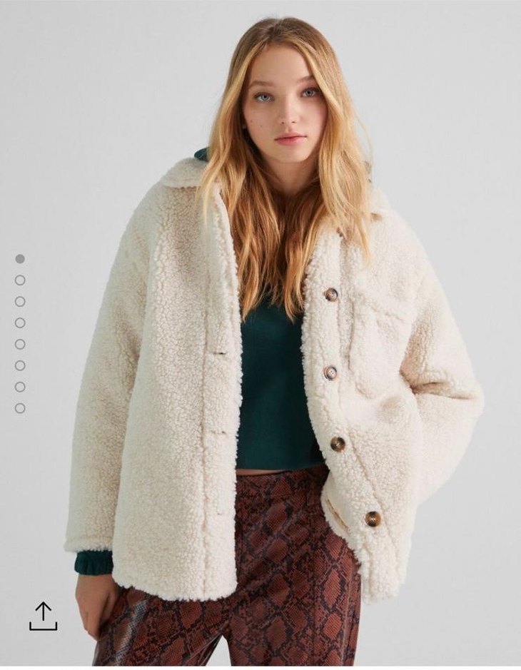 Kürklü detaylı, bej uzun kollu, normal boy ve bol kesim midi ceket. Rahat ve şık sokak stili için ideal.