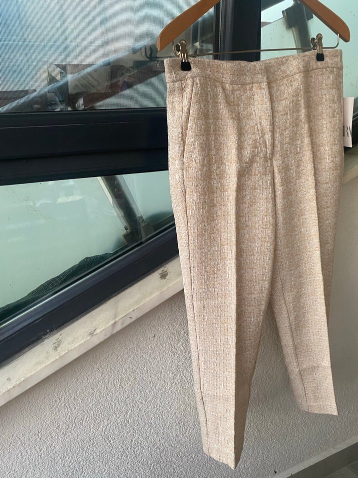 Zara Sıfır Bej Midi Pilili Kadın Kumaş Tüvit Pantolon