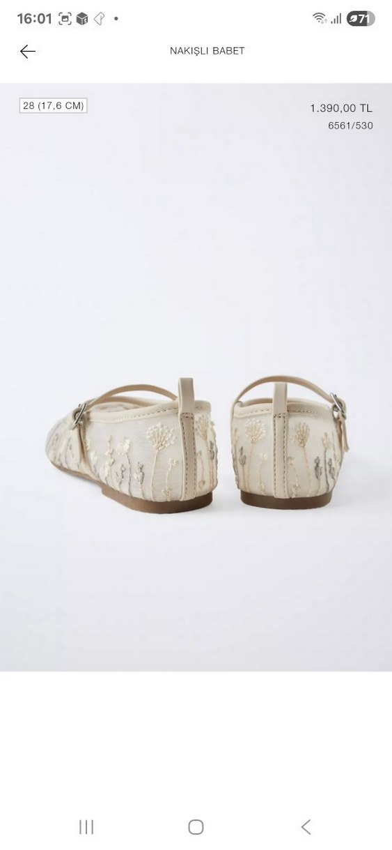 Zara Bej Nakışlı Kız Babet Ayakkabı