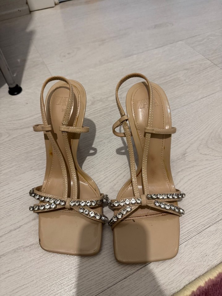 Zara Bej Parıltılı Stiletto Topuklu Kadın Ayakkabı