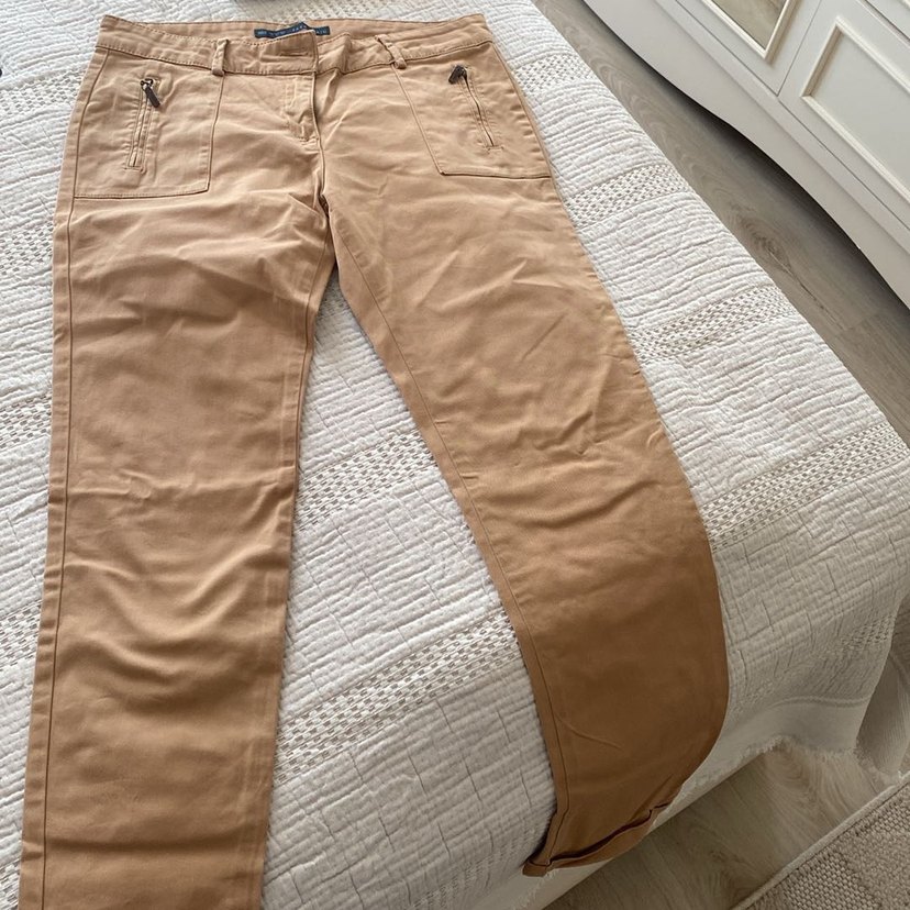 ZARA Bej Regular Fit Keten Kadın Pantolon