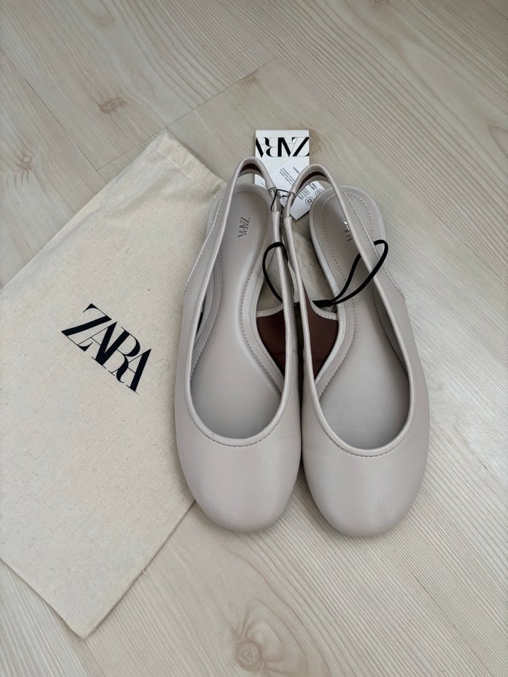 Gerçek deri, minimal ve sofistike kurtarıcı bir parça, kırık beyaz şahane bir babet, toz torbalı kutulu, bej rengi 37 ve 38 kaldı