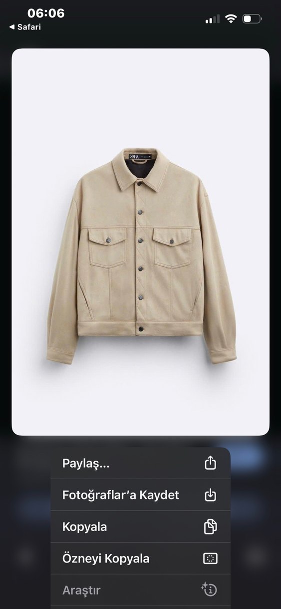 Bej süet kumaştan yapılmış, düğmeli, uzun kollu ve normal midi boyda ünisex ceket. Minimalist sokak stili ve günlük kullanım için uygundur. İki göğüs cebine sahiptir.