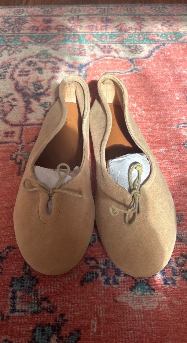 Bej süet kadın babetler desensiz tasarıma sahip, bohem ve retro Paris tarzı ile zahmetsiz şıklık sunar. Günlük kullanım için uygundur. 38 numara ,Zara’da. Alınmıştır,hiç kullanılmamıştır.