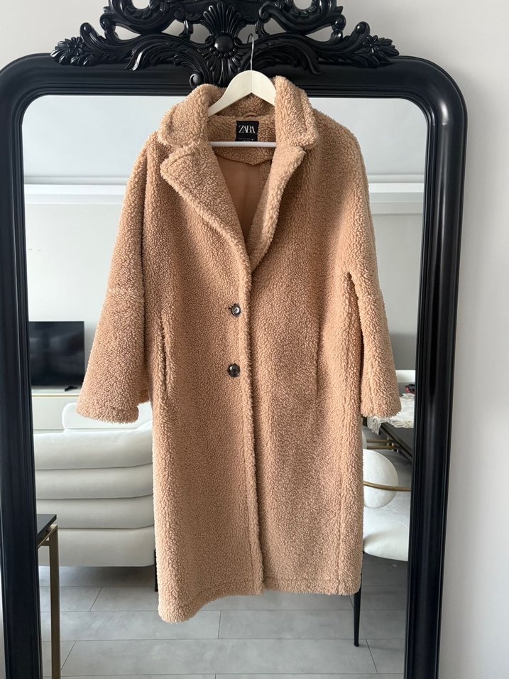 Zara Bej Uzun Peluş Kadın Kaban - Görsel 1