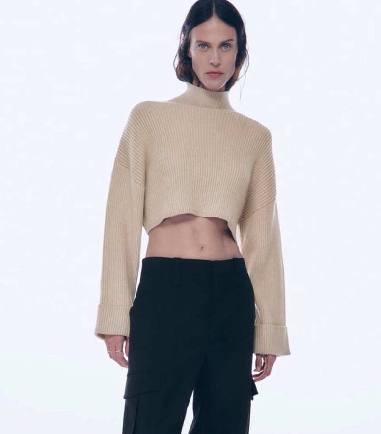 Zara Bej Yarım Balıkçı Yaka Kısa Triko Kazak