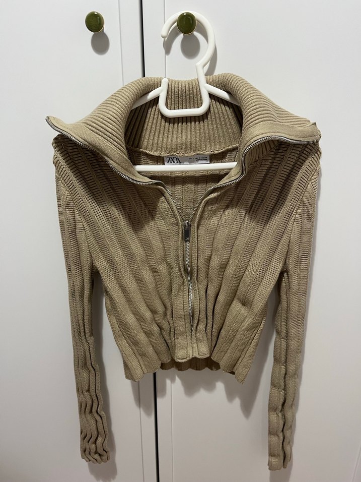 Zara Bej Yüksek Yakalı Fitilli Örgü Kadın Kazak