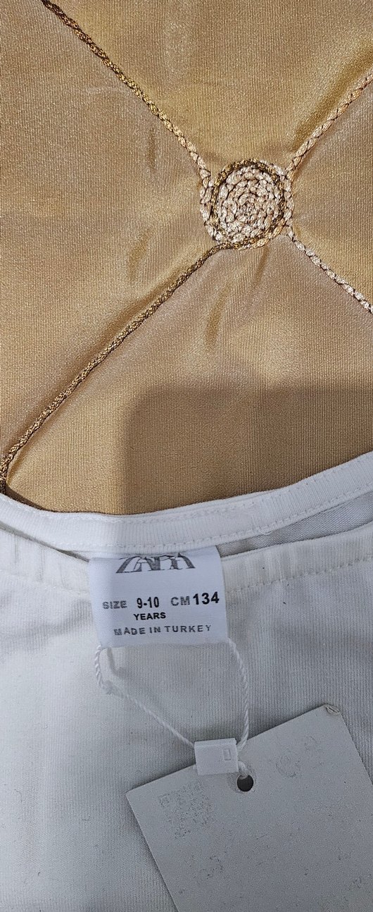 Zara markasına ait, 9-10 yaş için beyaz baskılı çocuk atlet. Yumuşak ve rahat kumaş.